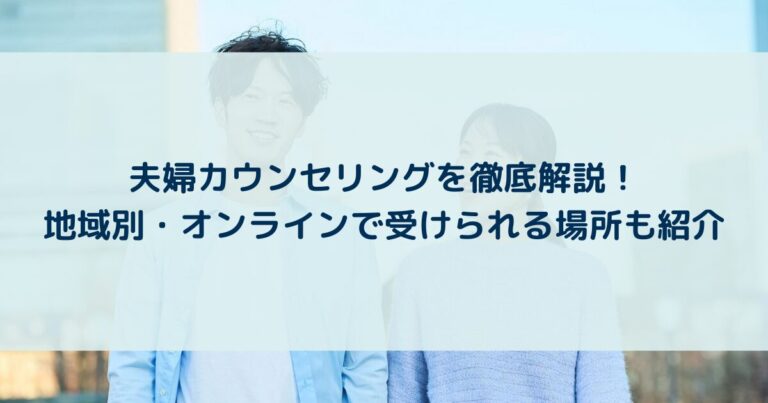 夫婦間にある悩みや問題は周りの人には相談しづらいと思います。 ここでは夫婦カウンセリングについて詳しく解説していきます。 夫婦カウンセリングって聞いたことはあるげけど、どんなものなのかよく知らないという人も少なくありませ … 続きを読む 夫婦カウンセリングを徹底解説!地域別・オンラインで夫婦相談できる場所も紹介