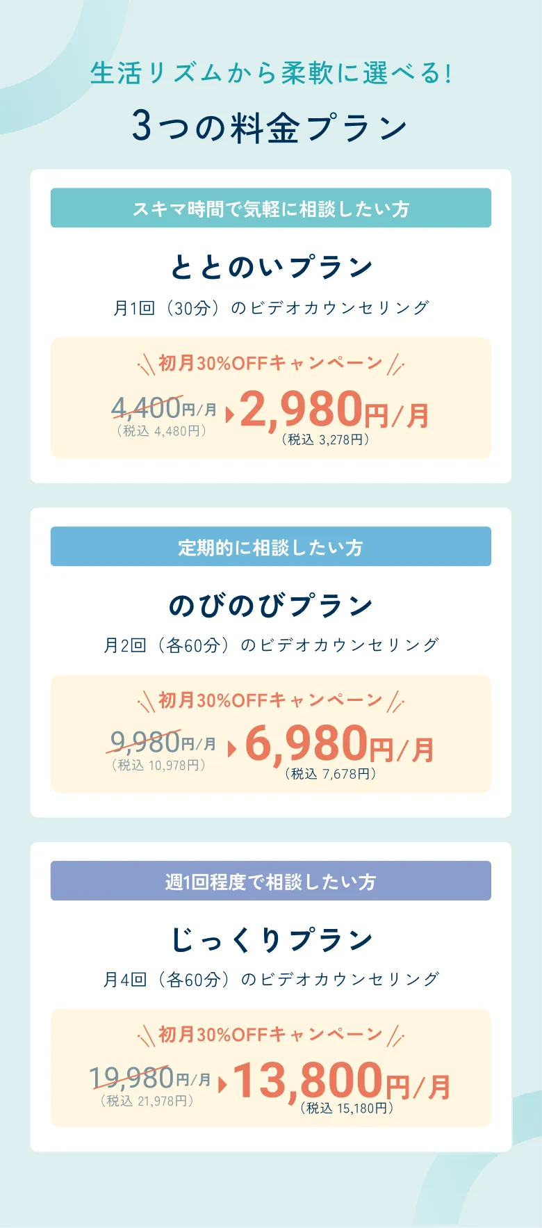 仕事や日常の忙しさに合わせて、柔軟にカウンセリングの時間を調整できるようにしています。 あなたの生活に合ったタイミングで、気軽にご利用いただけます。